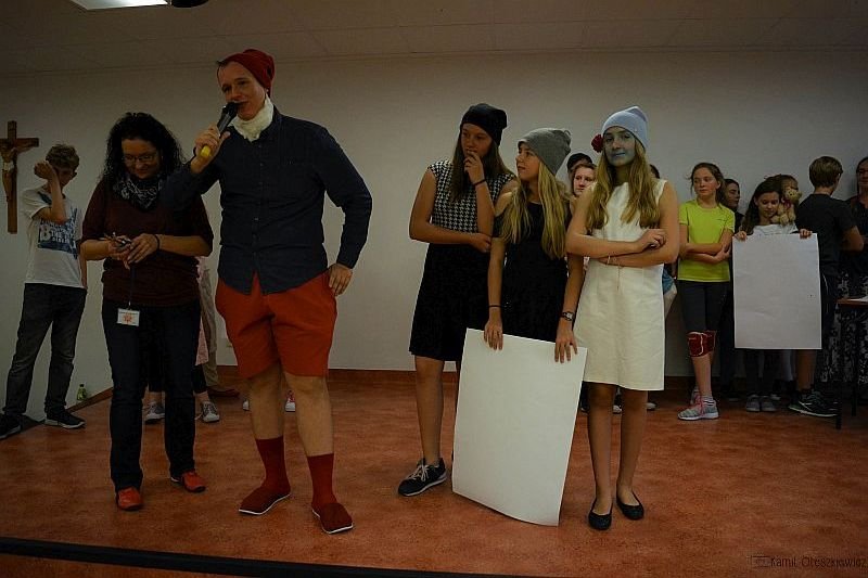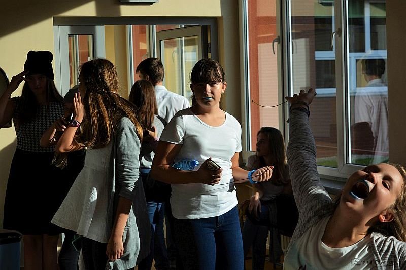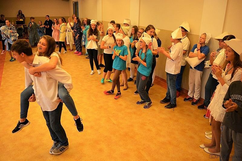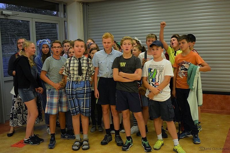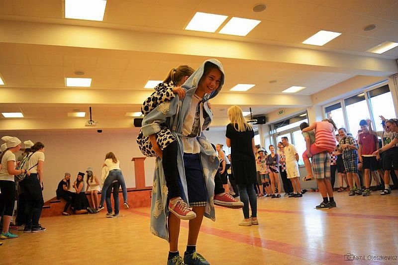 W czwartek 29.09 odbył się „Czar Klas” – wyjątkowa rywalizacja między klasami pierwszymi. Jest to unikalna okazja, by spotkać się ze wszystkimi uczniami poza szkolną ławą. Spędzić czas na zabawie, ale także rywalizacji. W tym roku każda klasa miała za zadanie się przebrać. W szkolnej auli konkurowały więc smerfy, przedszkolaki, szlafrokowe stwory oraz sportowcy.