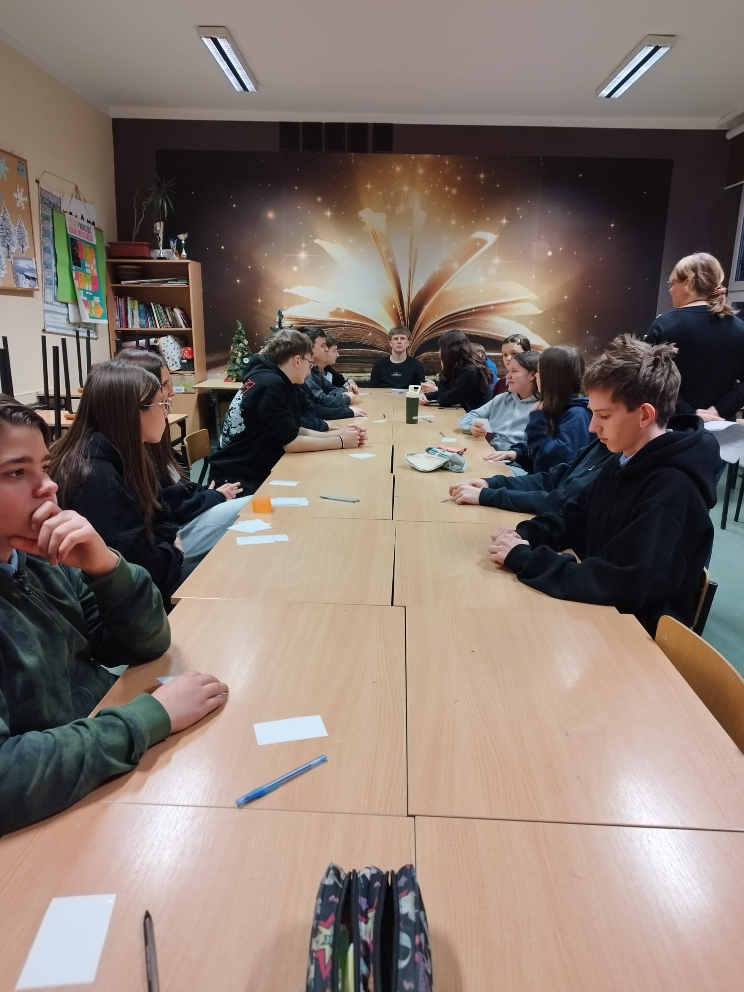 Piątek, piąteczek, piątunio…, a wieczorową porą uczniowie ósmej klasy nie zwalniają tempa w ramach przygotowań do majowego egzaminu. 23 stycznia 2026 wraz z polonistkami mgr Anetą Niewlaczyn i mgr Magdaleną Ziomek powtarzali i utrwalali wiadomości z zakresu teorii literatury, ortografii, bohaterów literackich i umiejętności pisania rozprawki… terenowej 🤓📝 A wszystko to w ramach Egzaminacyjnego zawrotu głowy.