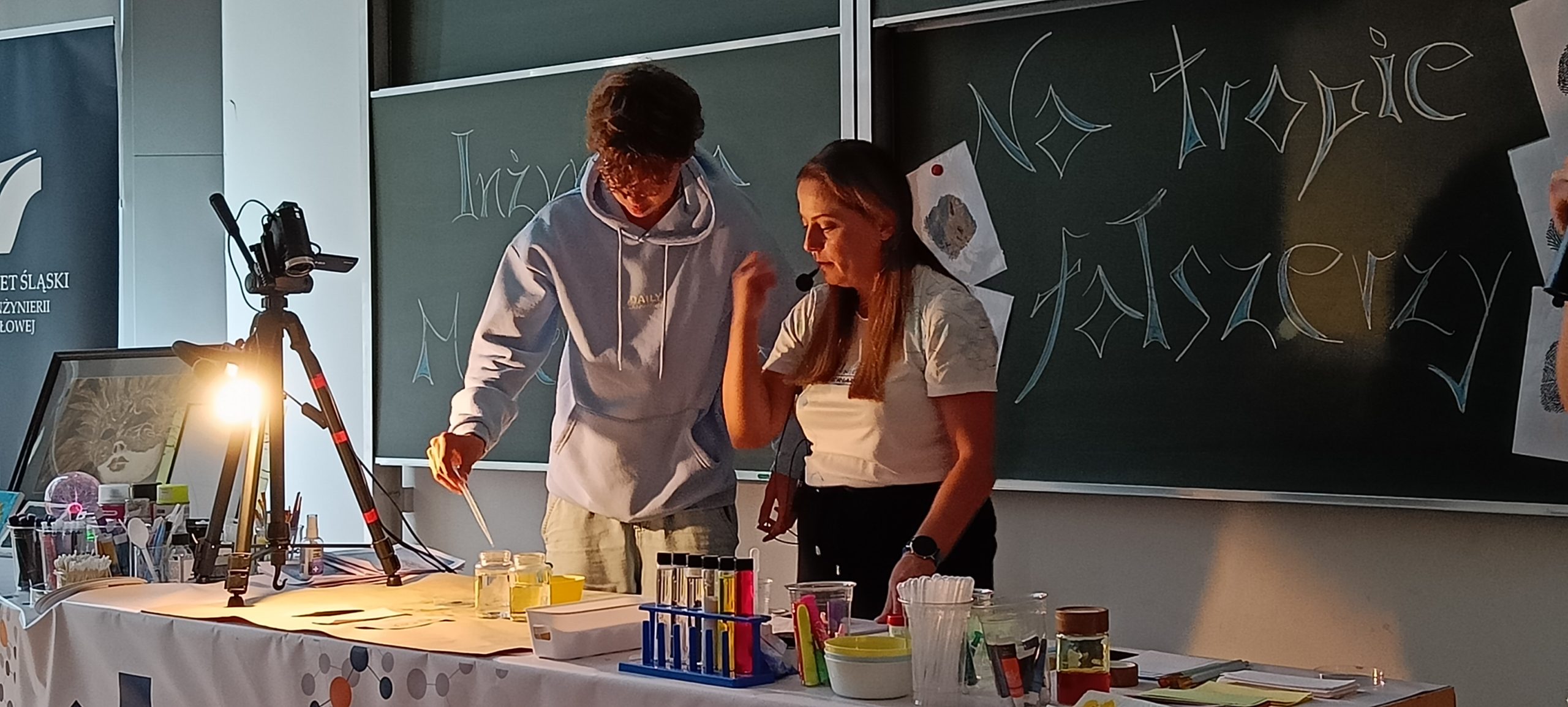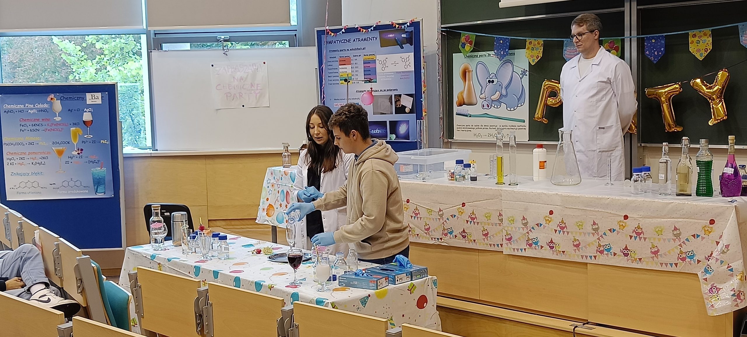 Uczniowie podczas chemicznego party przygotowywali szereg reakcji chemicznych, które pozwoliły na zrobienie kolorowych cieczy. Poznali podstawowe metody stosowane w inżynierii materiałowej, które pozwalają odróżnić oryginalne przedmioty od falsyfikatów. Podczas zajęć z fizyki dowiedzieli się, co decyduje o stabilności i wytrzymałości różnych konstrukcji. Nauczyli się, czym jest środek ciężkości, moment siły i równowaga.