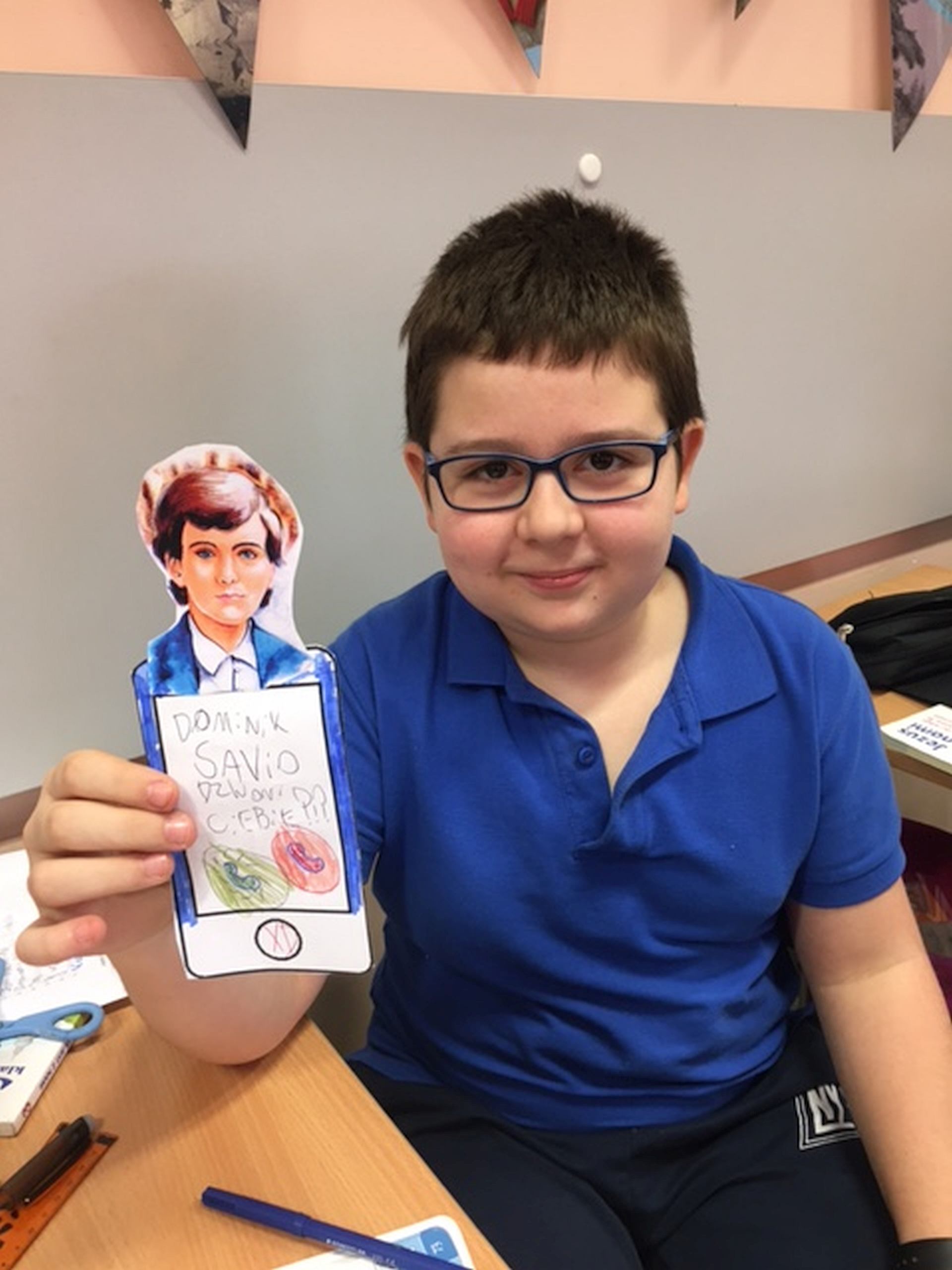 9 marca obchodziliśmy wspomnienie św. Dominika Savio, patrona naszej szkoły. To wspaniała okazja, aby poznać go bliżej. Uczniowie najmłodszych klas uczestniczyli w zajęciach warsztatowych dotyczących św. Dominika. W podsumowaniu każdy uczeń mógł wysłać sms do św. Dominika.