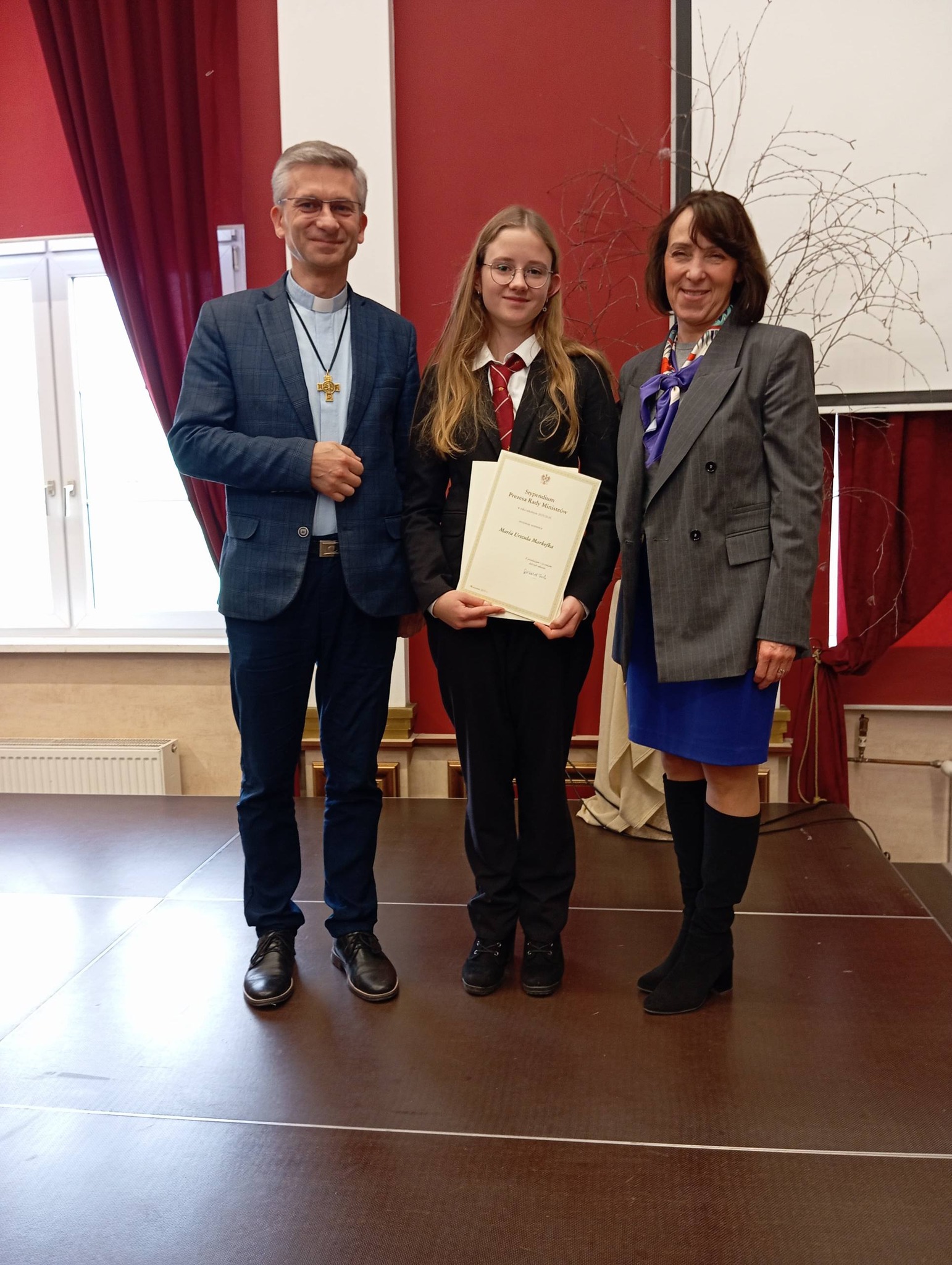 W uroczystości wzięła udział pani Aleksandra Dyla – Śląski Kurator Oświaty, witając zgromadzonych gości 🤝 i podkreślając, że sukces młodzieży jest efektem wspólnej pracy uczniów, rodziców oraz nauczycieli 🌟.