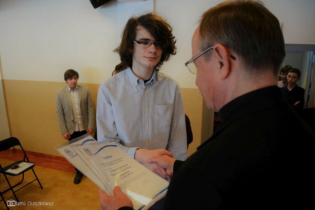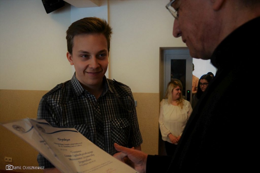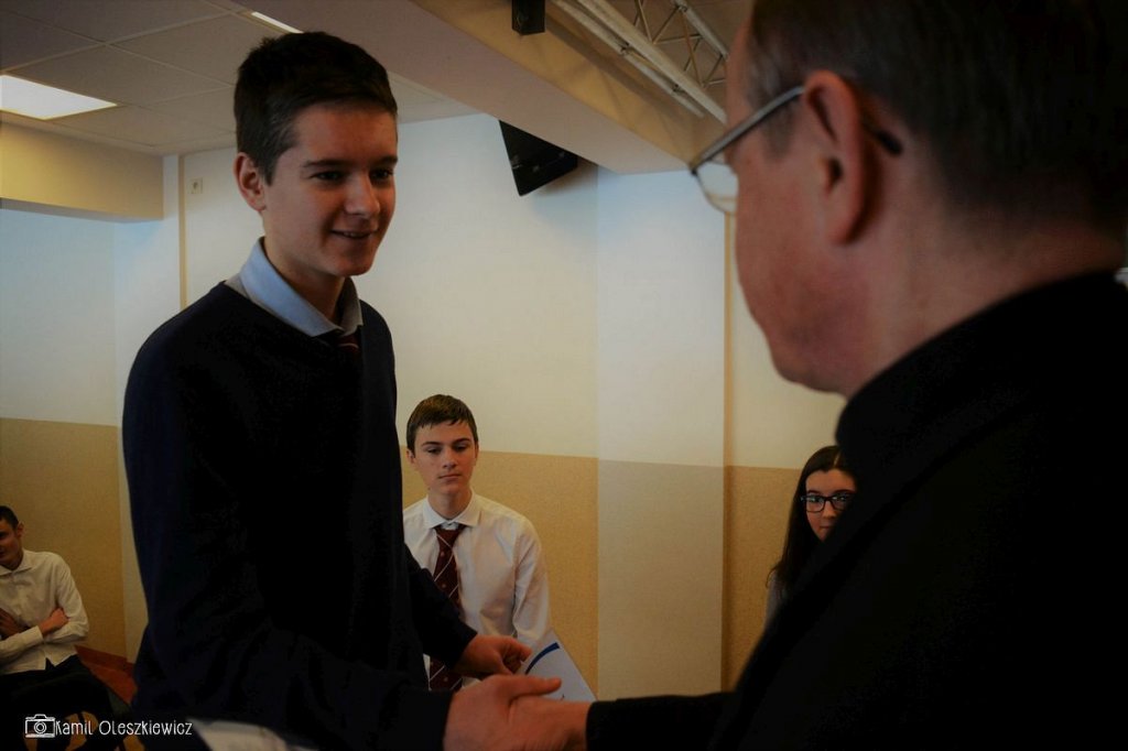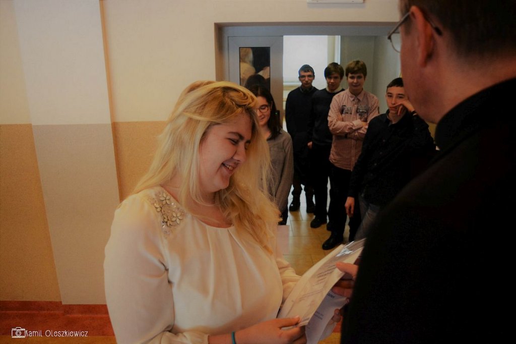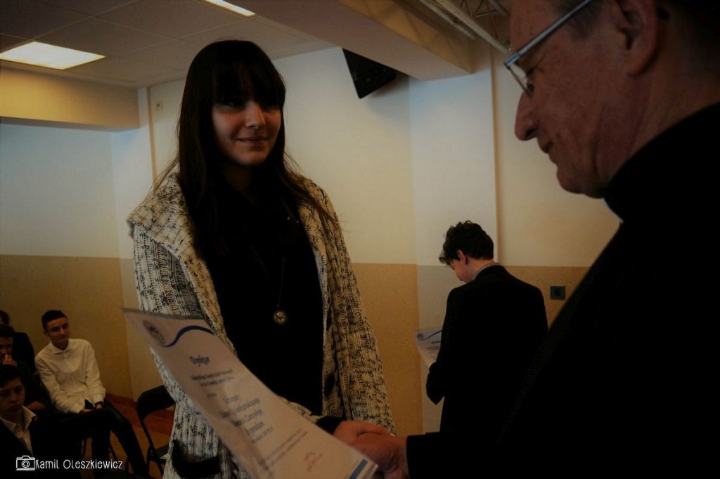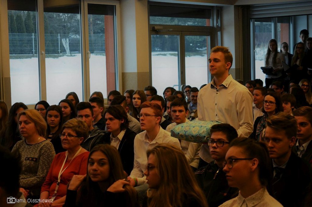 Chociaż godzinowy rozkład dnia różnił się dla uczniów gimnazjum i liceum, plan był bardzo podobny zarówno dla młodszych i dla nieco starszych. Rozpoczęliśmy od okazji do spędzenia trochę czasu z naszym wychowawcą wraz ze sprawdzeniem frenkwencji. Następnie udaliśmy się na aulę szkolną aby wziąć udział we mszy św. (pomimo lekkiego chaosu, wszyscy się odnaleźli), którą rozpoczęliśmy w skupieniu. Wsłuchując się w Słowo Boże, mogliśmy spoglądać na uśmiechniętą twarz ks. Bosco, ustawioną na scenie. W kazaniu ks. dyrektor Goryczka przypomniał nam o wyjątkowości postaci ks. Bosco, przytaczając różne zdarzenia z życia świętego uśmiechniętego (np. o rozmnożeniu kasztanów). Podkreślono także, że żaden z nas nie znalazł się w tej szkole przez przypadek, tylko z woli Bożej. Po Mszy mogliśmy oklaskiwać naszych najzdolniejszych kolegów i nasze najwybitniejsze koleżanki podczas uroczystego ogłoszenia tegorocznych zdobywców szkolnych stypendiów naukowych. Uczestniczyliśmy również w krótkiej akademii, w której uczniowie klasy 2 gimnazjum pokazali nam, co by się stało, gdyby ks. Bosko urodził się w roku 2000. Następnym punktem programu był film dokumentalny o zagrożeniach współczesnych nam sekt, a kolejnym wspólna zabawa – tradycyjna tombola.