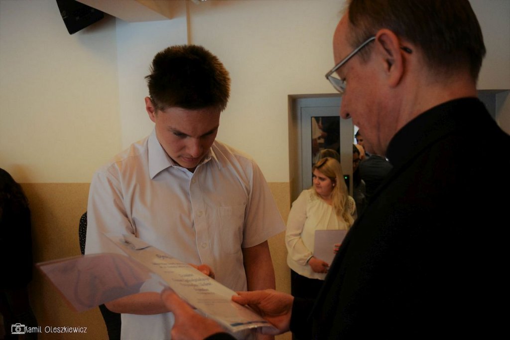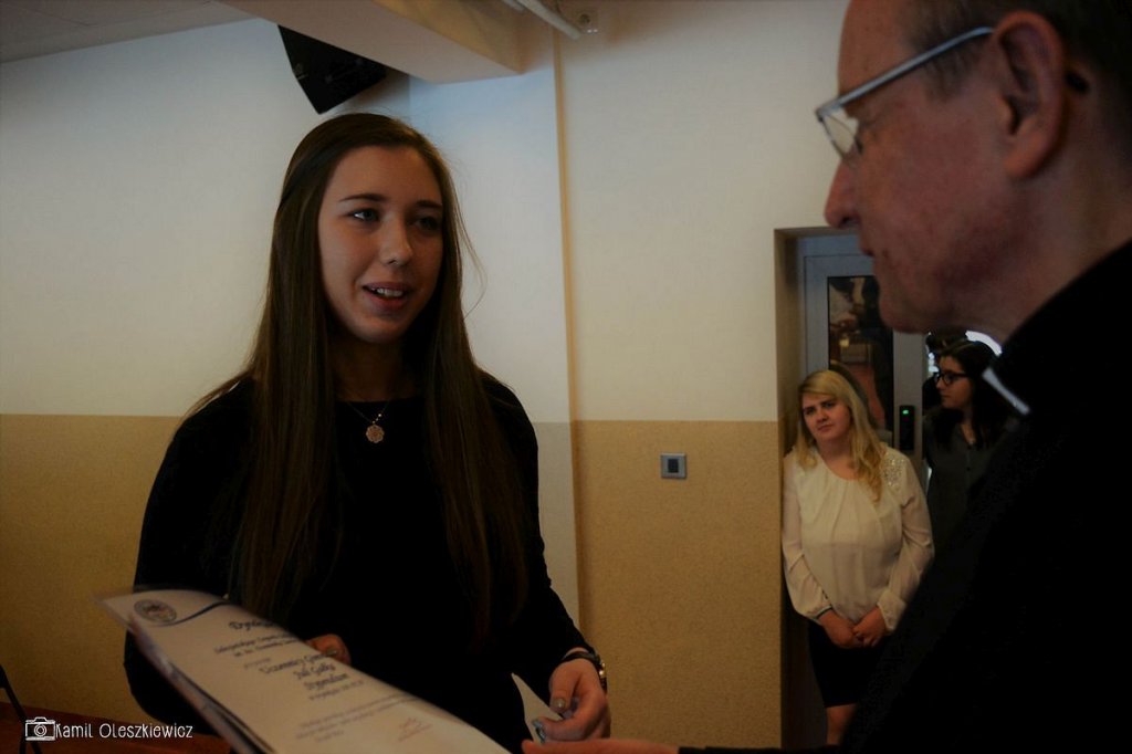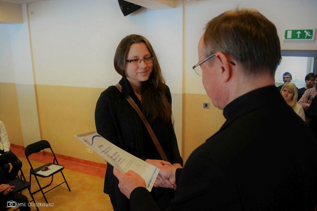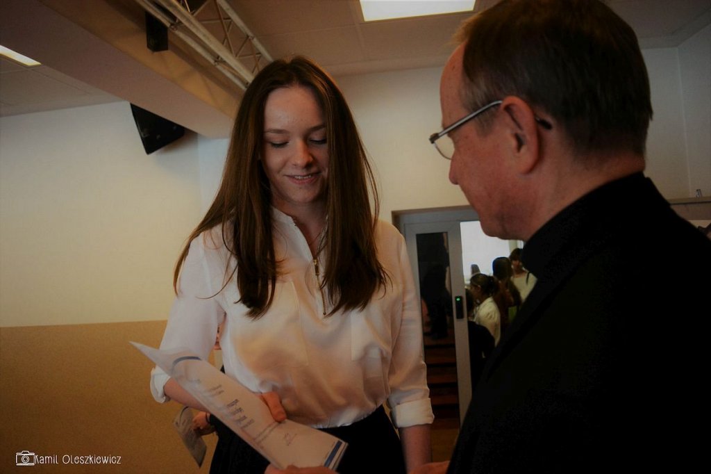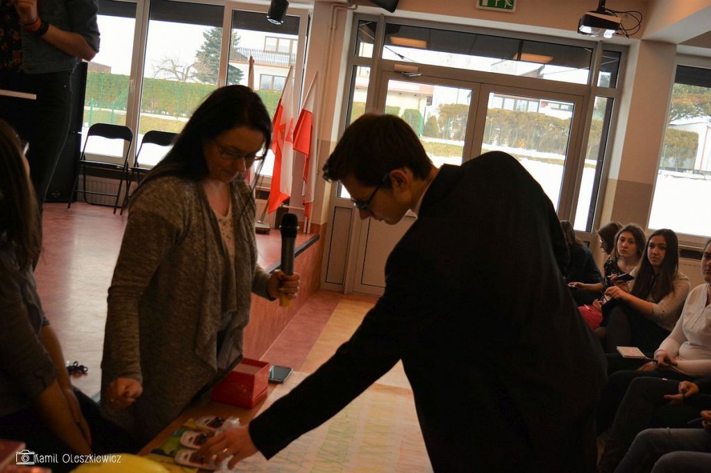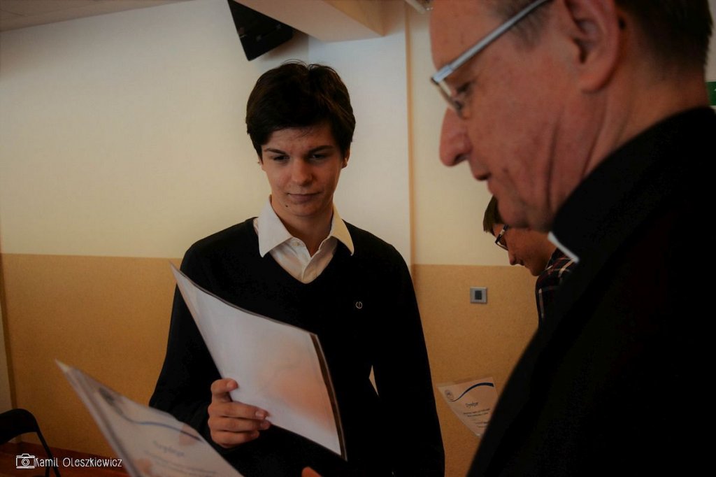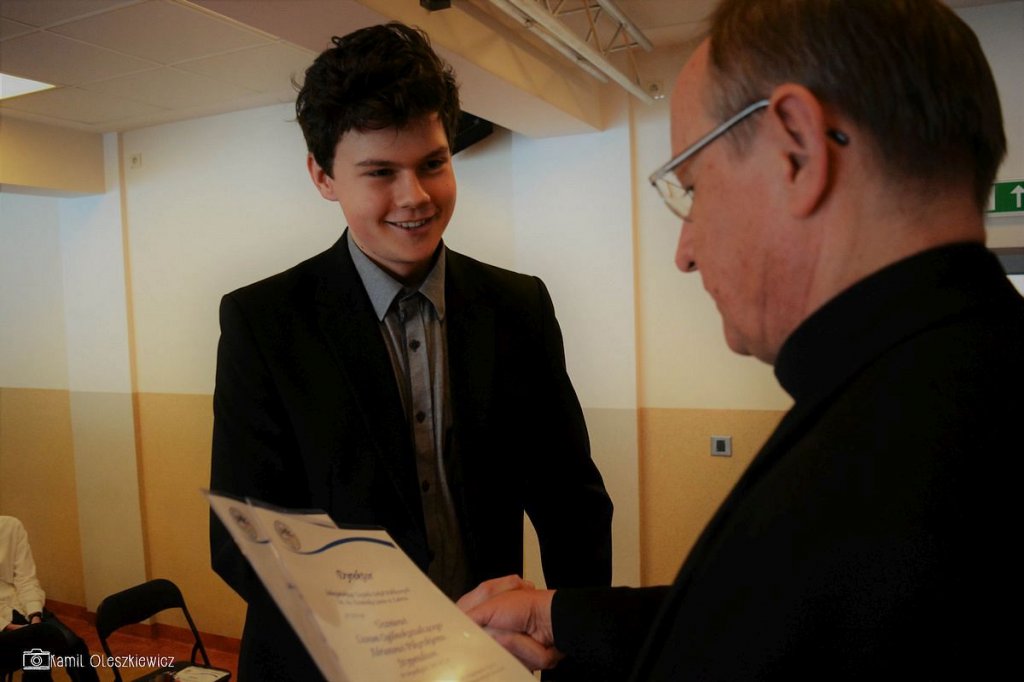 Chociaż godzinowy rozkład dnia różnił się dla uczniów gimnazjum i liceum, plan był bardzo podobny zarówno dla młodszych i dla nieco starszych. Rozpoczęliśmy od okazji do spędzenia trochę czasu z naszym wychowawcą wraz ze sprawdzeniem frenkwencji. Następnie udaliśmy się na aulę szkolną aby wziąć udział we mszy św. (pomimo lekkiego chaosu, wszyscy się odnaleźli), którą rozpoczęliśmy w skupieniu. Wsłuchując się w Słowo Boże, mogliśmy spoglądać na uśmiechniętą twarz ks. Bosco, ustawioną na scenie. W kazaniu ks. dyrektor Goryczka przypomniał nam o wyjątkowości postaci ks. Bosco, przytaczając różne zdarzenia z życia świętego uśmiechniętego (np. o rozmnożeniu kasztanów). Podkreślono także, że żaden z nas nie znalazł się w tej szkole przez przypadek, tylko z woli Bożej. Po Mszy mogliśmy oklaskiwać naszych najzdolniejszych kolegów i nasze najwybitniejsze koleżanki podczas uroczystego ogłoszenia tegorocznych zdobywców szkolnych stypendiów naukowych. Uczestniczyliśmy również w krótkiej akademii, w której uczniowie klasy 2 gimnazjum pokazali nam, co by się stało, gdyby ks. Bosko urodził się w roku 2000. Następnym punktem programu był film dokumentalny o zagrożeniach współczesnych nam sekt, a kolejnym wspólna zabawa – tradycyjna tombola.