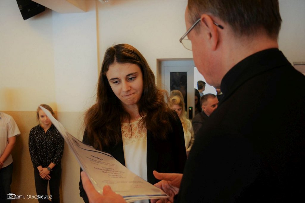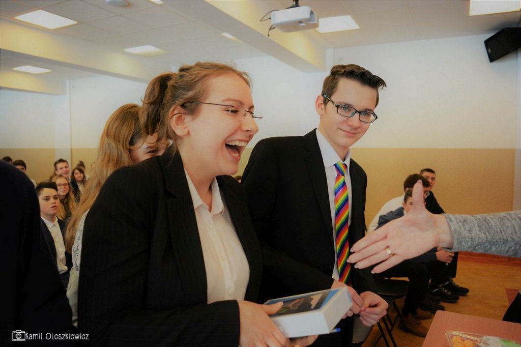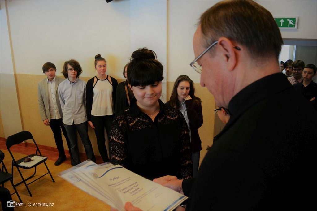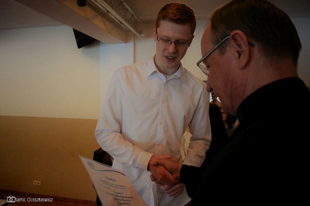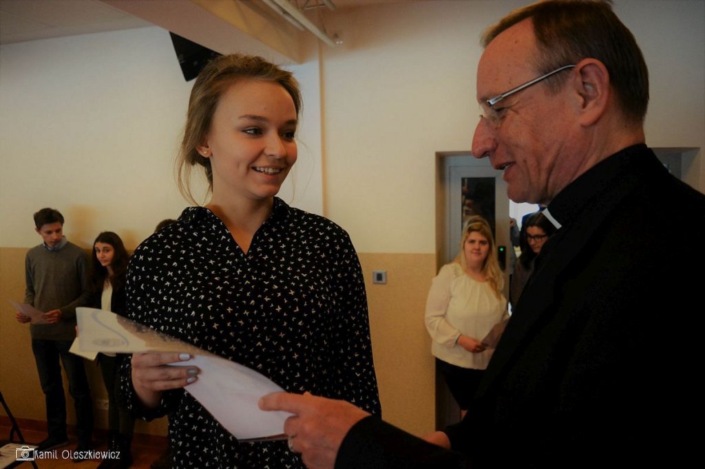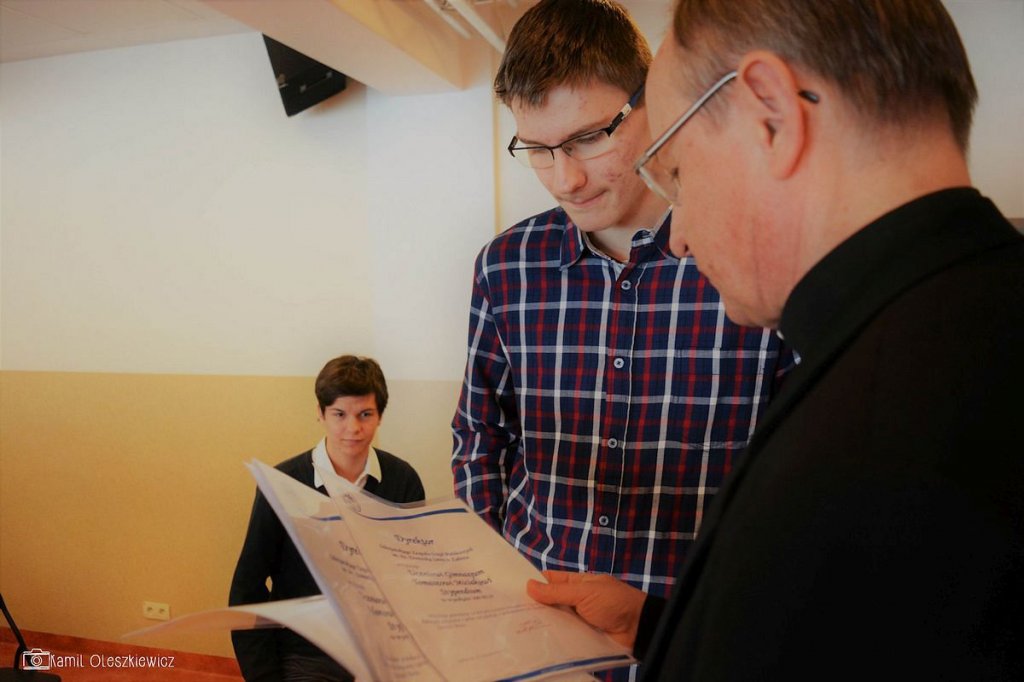 Chociaż godzinowy rozkład dnia różnił się dla uczniów gimnazjum i liceum, plan był bardzo podobny zarówno dla młodszych i dla nieco starszych. Rozpoczęliśmy od okazji do spędzenia trochę czasu z naszym wychowawcą wraz ze sprawdzeniem frenkwencji. Następnie udaliśmy się na aulę szkolną aby wziąć udział we mszy św. (pomimo lekkiego chaosu, wszyscy się odnaleźli), którą rozpoczęliśmy w skupieniu. Wsłuchując się w Słowo Boże, mogliśmy spoglądać na uśmiechniętą twarz ks. Bosco, ustawioną na scenie. W kazaniu ks. dyrektor Goryczka przypomniał nam o wyjątkowości postaci ks. Bosco, przytaczając różne zdarzenia z życia świętego uśmiechniętego (np. o rozmnożeniu kasztanów). Podkreślono także, że żaden z nas nie znalazł się w tej szkole przez przypadek, tylko z woli Bożej. Po Mszy mogliśmy oklaskiwać naszych najzdolniejszych kolegów i nasze najwybitniejsze koleżanki podczas uroczystego ogłoszenia tegorocznych zdobywców szkolnych stypendiów naukowych. Uczestniczyliśmy również w krótkiej akademii, w której uczniowie klasy 2 gimnazjum pokazali nam, co by się stało, gdyby ks. Bosko urodził się w roku 2000. Następnym punktem programu był film dokumentalny o zagrożeniach współczesnych nam sekt, a kolejnym wspólna zabawa – tradycyjna tombola.