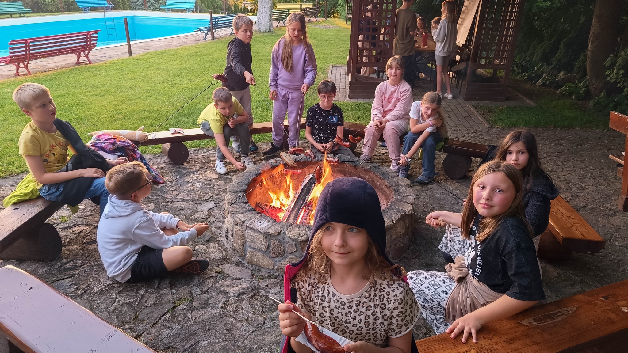 A dzień zakończyliśmy przy ognisku, pysznych kiełbaskach i pięknym zachodzie słońca